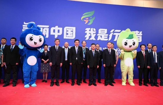 图注:揭晓中国生态环境保护吉祥物——小山小水